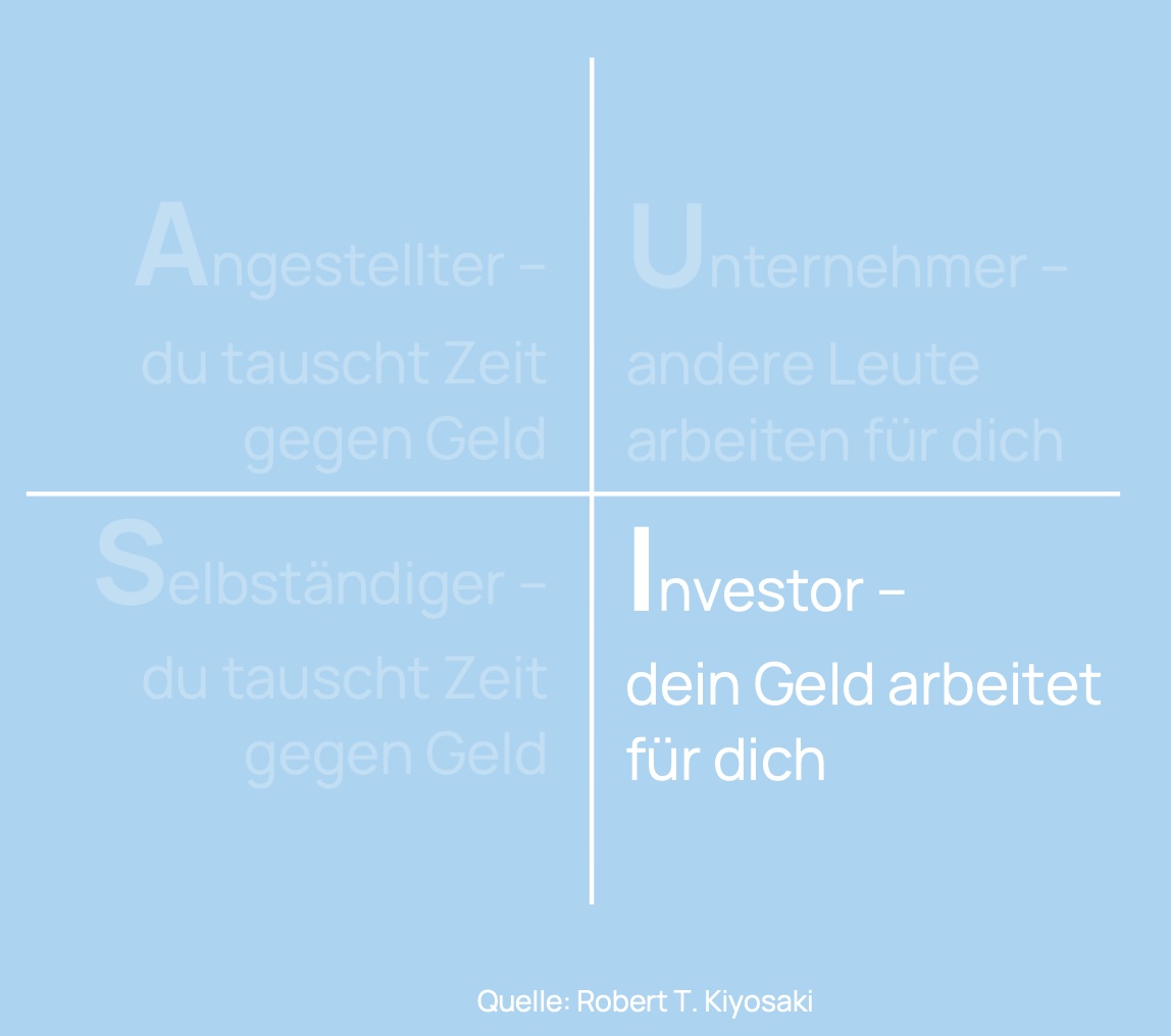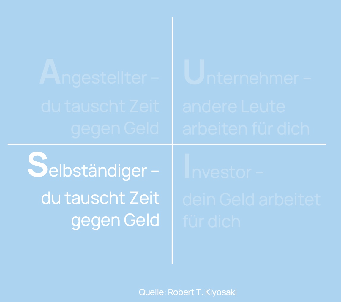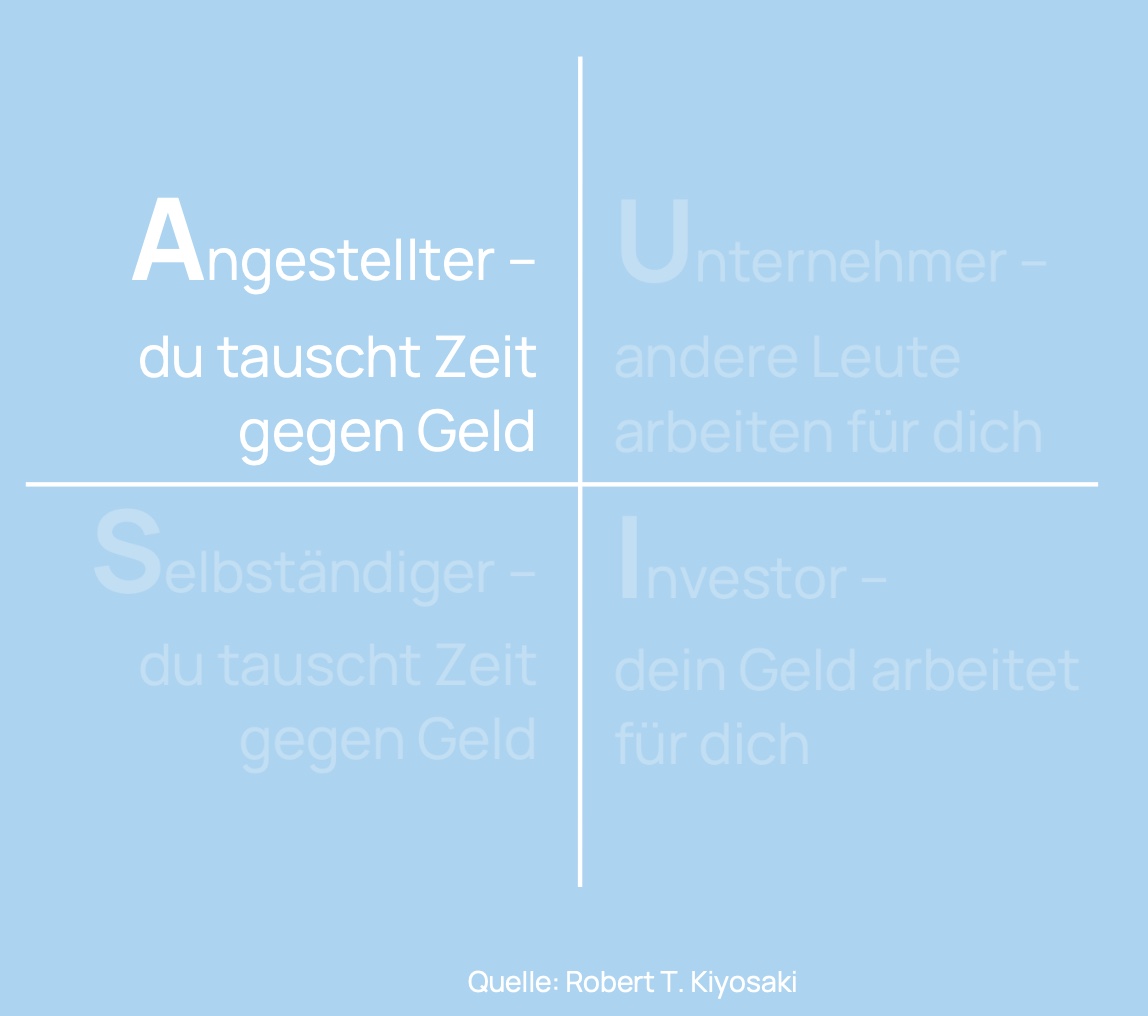 Finanzielle Abhängigkeit vermeiden und finanzielle Unabhängigkeit erreichen: Hier möchten wir dir aufzeigen, wieso dieses Konzept entstanden ist und warum sich im Grunde jeder damit ernsthaft beschäftigen sollte, der individuelle Freiheit anstrebt. Stell dir parallel selbst die Frage, wie du Freiheit für dich definierst. Ohne “Gesundheit” geht nichts, das ist klar. Es geht im Leben ja auch nicht immer ums Geld, aber alles kostet Geld. Also hängt Freiheit auch von “Geld” ab. Du kannst niemals richtig frei sein, ohne auch finanziell frei zu sein. Dazu kommt der ganz wesentliche Faktor “Zeit”. Freiheit mag frei sein, aber bist du bereit den Preis zu zahlen? Der Preis liegt darin, deine Ressourcen, wie Zeit und Geld sinnvoll einzusetzen. Geld ist ein Mittel zum Zweck, die Frage ist nur welchen Zweck du verfolgst, bzw. welchen Lebensweg du gehen möchtest. Mit unserem Konzept wollen wir dir ein Mittel zum lebenslangen Geldfluss auf deinem Lebensweg anbieten. Wenn Geld ein Mittel zum Zweck ist, musst du dich fragen, welchen Zweck du verfolgst. Oder anders gefragt: Welche Ziele verfolgst du auf deinem Lebensweg? Laut einer Studie über Harvard-Studenten machen sich nur 17 Prozent aller Absolventen Gedanken über ihre tatsächlichen Ziele nach ihrem Abschluss, weshalb sie fokussierter sind und im Schnitt das Dreifache der restlichen 83 Prozent verdienen. Anders gesagt haben 83 Prozent der Absolventen überhaupt keine Zielsetzungen für ihre Karriere. Lediglich drei Prozent der Absolventen hatten klare Ziele für ihre Karriere und diese auch schriftlich fixiert. Diese drei Prozent verdienen im Schnitt das Zehnfache der Absolventen, die gar keine Ziele hatten. Daraus lässt sich folgern, dass die Gruppe derjenigen, die sich ernsthaft mit ihren Zielen auseinandersetzt, sehr klein ist. Außerdem ist der Einkommensunterschied zwischen denjenigen, die klare schriftliche Ziele haben und denen, die keine klaren Ziele haben, sehr groß. “Angestellte” tauschen im Grunde Zeit gegen Geld/Gehalt. Wie viel verdient ein Angestellter (ohne Personalverantwortung) im Schnitt in Deutschland jährlich? Angestellte (ohne Personalverantwortung) verdienen durchschnittlich ca. 50.000€ brutto jährlich. Leider sind Gehaltssprünge ab dem 35. Lebensjahr meistens nicht sehr wahrscheinlich und Frauen verdienen leider immer noch deutlich weniger als Männer. Knapp 90 Prozent der Deutschen arbeiten im Angestelltenverhältnis. Wir kennzeichnen den oberen linken Quadranten mit einem “A”, Hast du in deinem Job die Möglichkeit Personalverantwortung zu übernehmen? Denn wer als Angestellter gut verdienen will, muss wohl Führungskraft werden! Hier liegt der durchschnittliche Verdienst deutlich höher. Was charakterisiert einen “Angestellten” noch? Nach Robert T. Kiyosakis “Cashflow-Qudrant” wird in vier grundlegenden Kategorien von Einnahmequellen unterschieden. Dieser kann dir helfen, deinen Lebensweg zu finden, denn Menschen werden – wie wir alle wissen – in der Schule darauf vorbereitet, einen Job im Angestelltenverhältnis, oder vielleicht auch in der Selbstständigkeit, auszuüben. Leider geht es in der Schule nicht darum einen Lebensweg zu finden. Manche Menschen wissen zwar sehr früh, was sie wollen, aber nicht jeder findet seinen Weg so schnell. Doch auch bei manchen dieser Personen wirst du feststellen, dass sie Berufe gefunden haben und keine Lebenswege (=Berufungen). Also wie findet man seinen Lebensweg in finanzieller Unabhängigkeit? Lass uns gemeinsam versuchen, diesem Weg näher zu kommen. Wer arbeitet denn nicht mehr für die Ziele seines Chefs, tauscht dennoch Zeit gegen Geld? Viele Angestellte bauen sich mittlerweile ein zweites berufliches Standbein auf, um finanziell unabhängiger zu sein. Auf zwei Beinen steht es sich bekanntlich stabiler. Wenn eines wegzubrechen droht, wie beispielsweise durch eine Krise, dann findet man finanziellen Halt auf dem anderen Standbein. Der Quadrant unten links wird mit einem “S” für den “Selbstständigen” gekennzeichnet, da es der nächste Schritt eines Angestellten sein kann und immer häufiger ist. Hast du dir mal überlegt, dich selbstständig zu machen? Selbstständige tauschen aber oft nach wie vor Zeit gegen Geld. Sie investieren meist mehr Zeit, als die Angestellten, weshalb sie im Schnitt auch deutlich mehr verdienen – durchschnittlich ca. 100.000€ brutto jährlich. Das liegt unter anderem daran, dass sie für ihre eigenen Ziele arbeiten. Sie sind allerdings auch von ihrer Arbeitskraft abhängig. Das heißt, wenn sie nicht arbeiten können, verdienen sie auch kein Geld. Der Selbstständige sollte sich also gegen den Verlust seiner Arbeitskraft absichern und dementsprechend einen gewissen Beitrag zur Absicherung des Risikos investieren. Später, wenn ein Selbstständiger in Rente geht, kann er nicht auf die gesetzliche Rente bauen, da er sich zumeist davon befreien hat lassen. Auch wenn nicht, besteht hier dringender Bedarf privat vorzusorgen, um den Lebensstandard des Erwerbslebens im Rentenalter halten zu können. Wenn es ein Selbstständiger schafft Personal zu beschäftigen und somit Menschen für sich arbeiten zu lassen, hat er den Sprung zum “Unternehmer” geschafft. Er hat sein Geschäft somit skaliert, wodurch es dann nicht mehr zwingend von seiner Anwesenheit abhängt. Daher wird der obere rechte Quadrant mit einem “U” gekennzeichnet. Wie würdest du das Dasein eines Unternehmers noch beschreiben? Ein Unternehmer lässt Menschen für sein Unternehmen arbeiten und verdient damit sein Geld. Seine Anwesenheit treibt das Geschäft voran, jedoch ist sie nicht mehr zwingend notwendig, da Unternehmer Personal einstellen, welches Aufgaben und Verantwortungen übernehmen. Was schätzt du verdient ein Unternehmer (zum Beispiel der Geschäftsführer einer GmbH) durchschnittlich jährlich? Das durchschnittliche Einkommen eines deutschen Unternehmers liegt bei ca. 200.000€ brutto jährlich! Unternehmer sind oft a